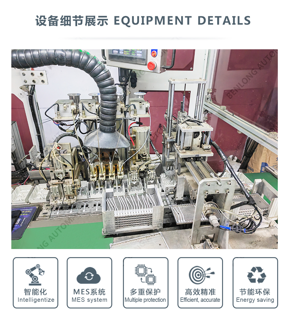 具有自动上料、加注助焊剂、零部件成型、焊接、装配、检测、下料、缺料报警、不良品区分、90°旋转等工序的在线监测、实时监控、质量溯源、