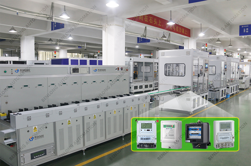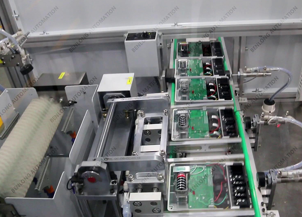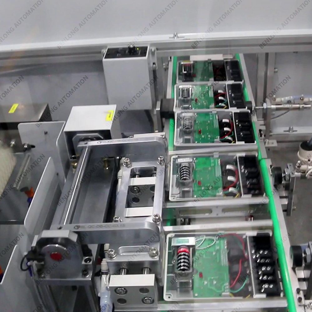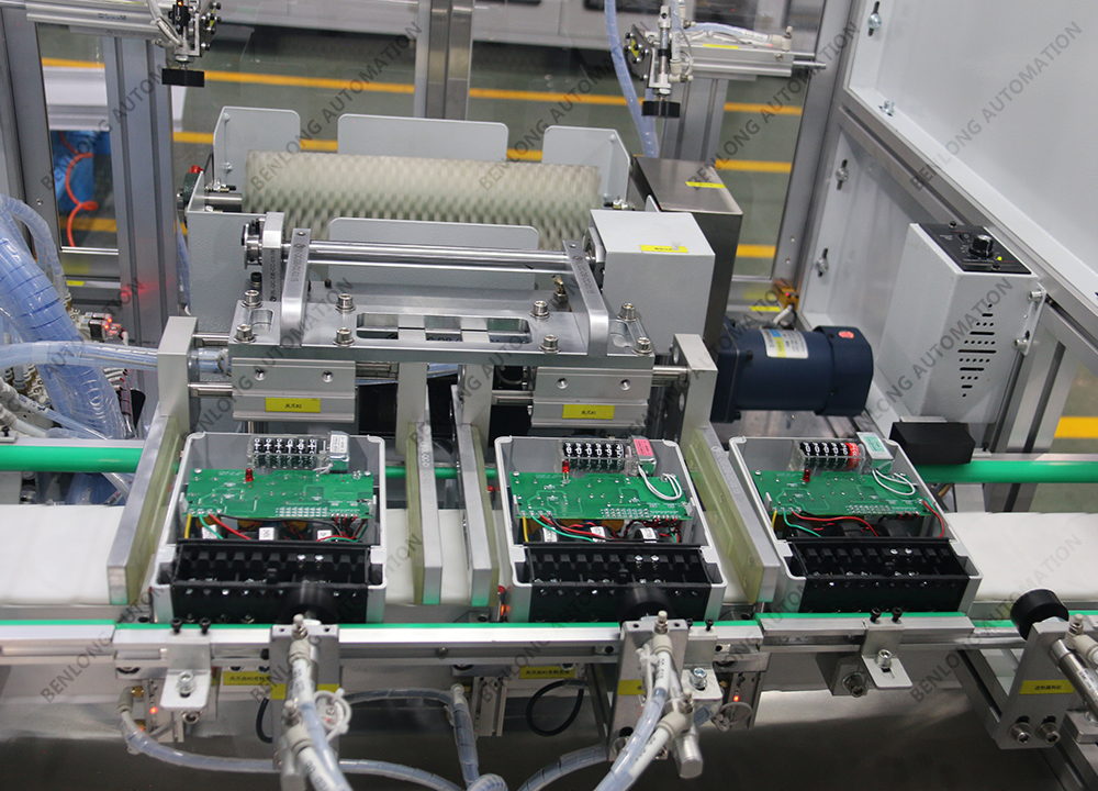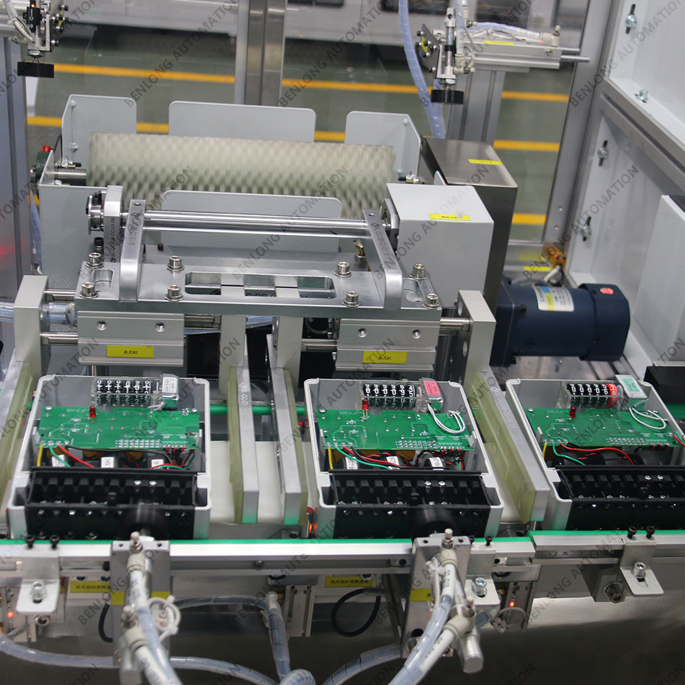 具有产品自动上料底座、装配导电柱、装配线路板、锡焊、锁螺丝、装配密封圈、装配玻璃罩、装配外圈、锁螺丝、特性检测、