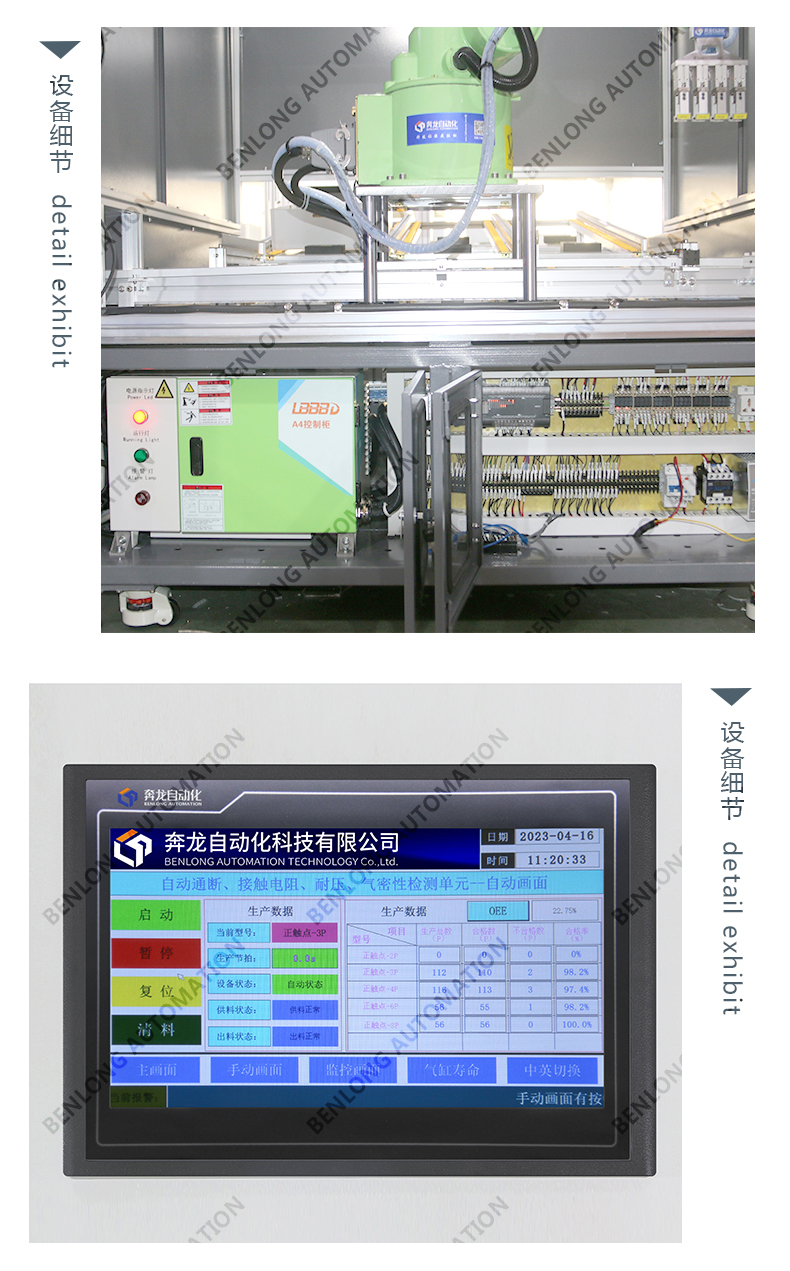 通断、手柄合闸扭力、耐压、回路电阻、气密性检测、移印、激光标刻、CCD外观检测、合格不合格区分、包装、码垛、