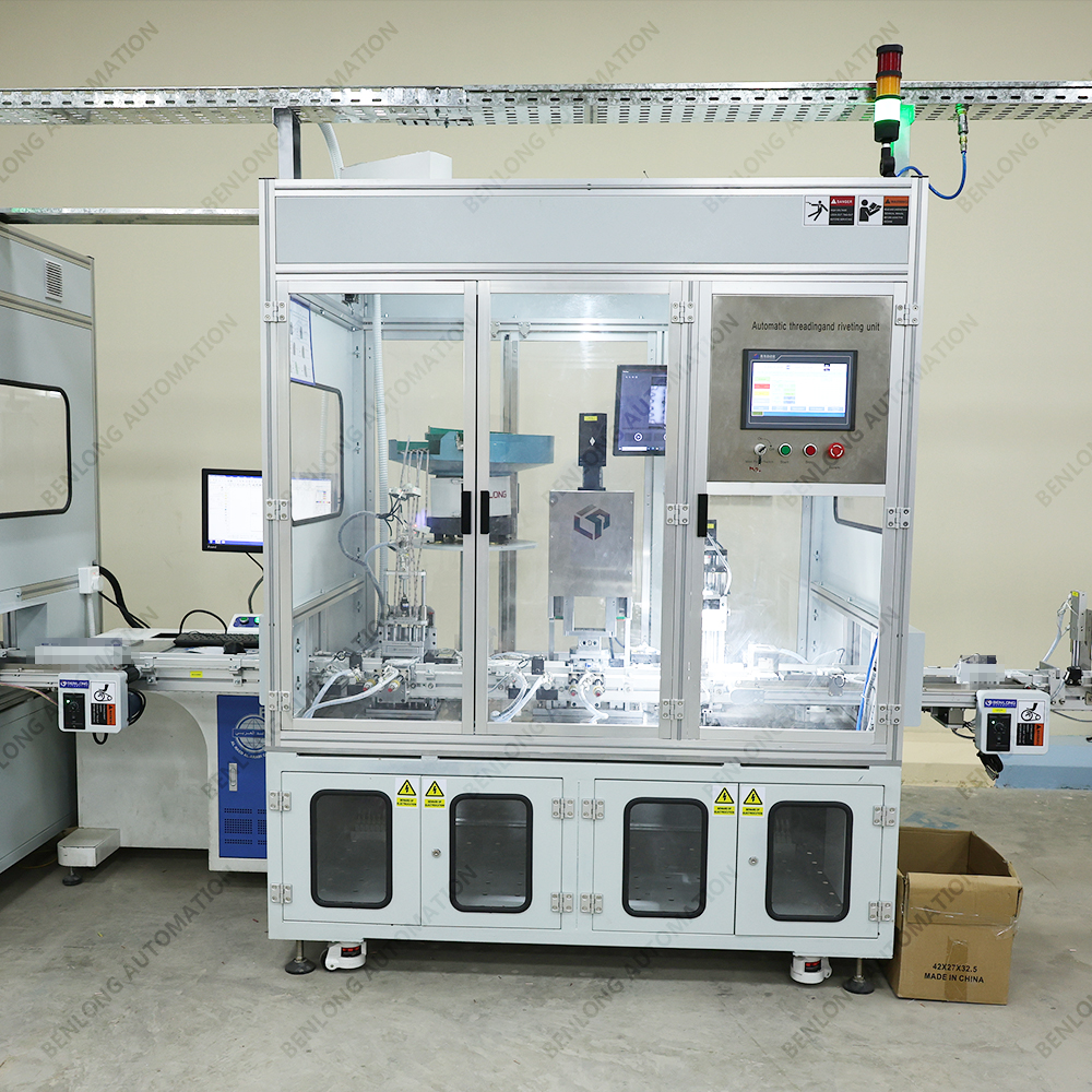 具有自动穿铆钉铆接、CCD检测、不良品区分、缺料报警、翻转竖立等工序的在线监测、实时监控、质量溯源、条码识别、关键元器件寿命监测、数据存储、