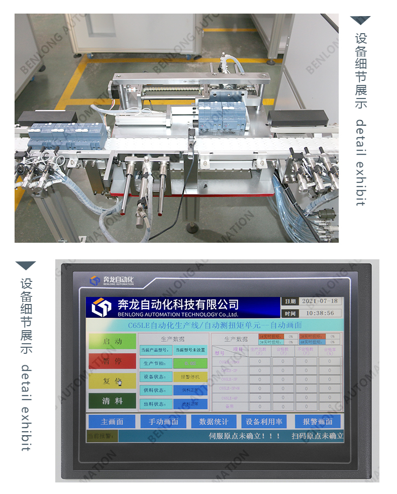 具有自动上料、扭矩检测、下料、缺料报警、90°旋转等工序的在线监测、实时监控、质量溯源、条码识别、关键元器件寿命监测、数据存储、