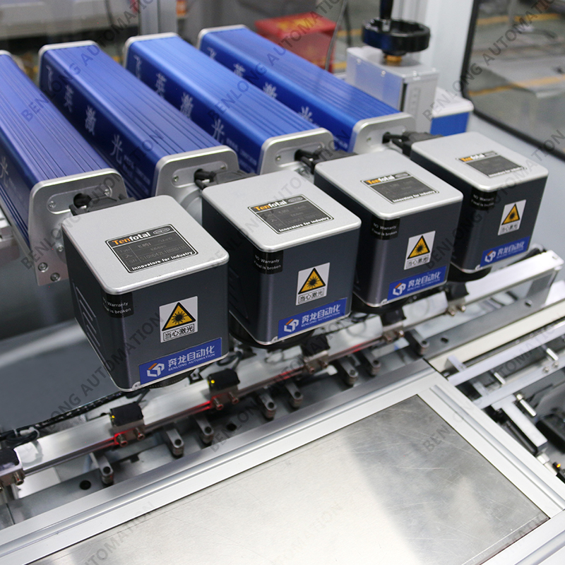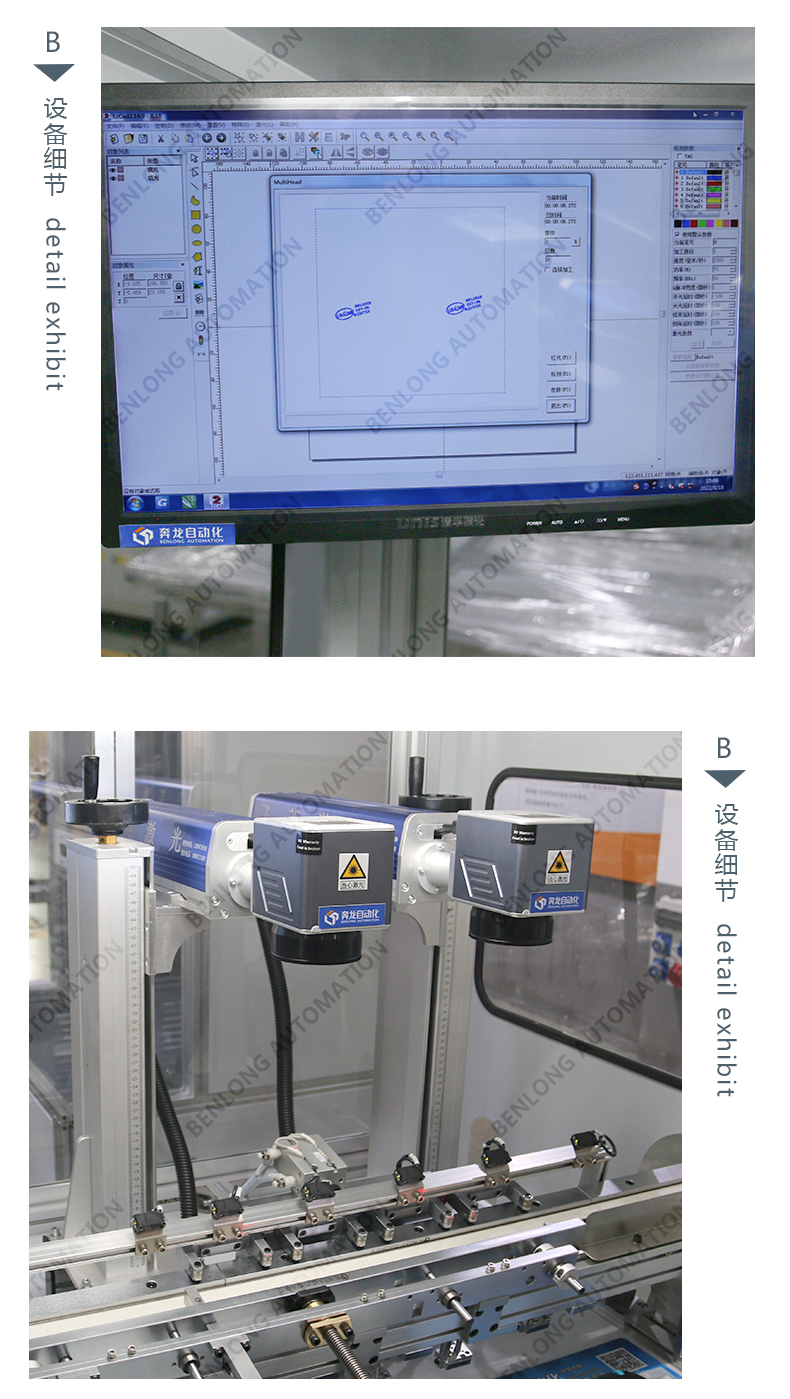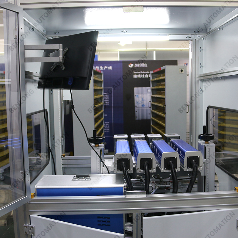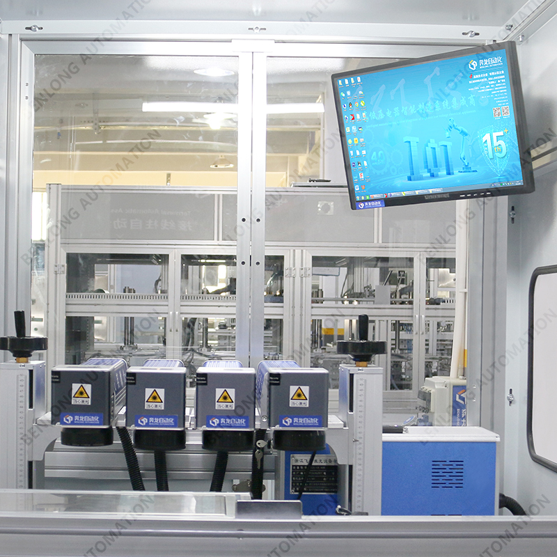 具有自动上料、精密加工、激光打标、自动下料、除尘、不良品区分、缺料报警等工序的在线监测、实时监控、