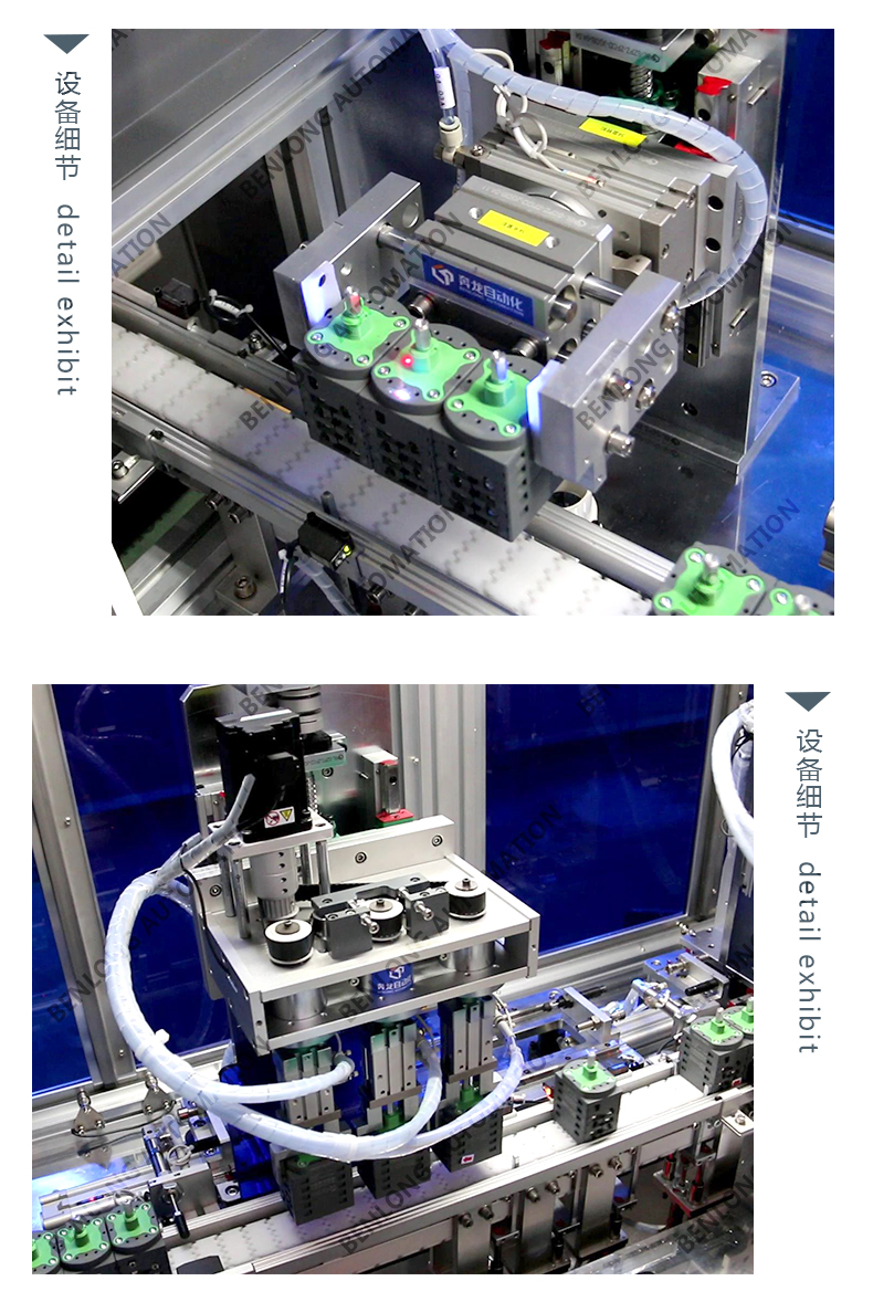 压、回路电阻、气密性检测、移印、激光标刻、CCD外观检测、合格不合格区分、包装、码垛、AGV物流、缺料报警等工序的装配、