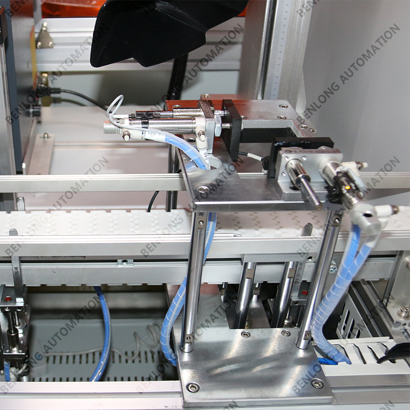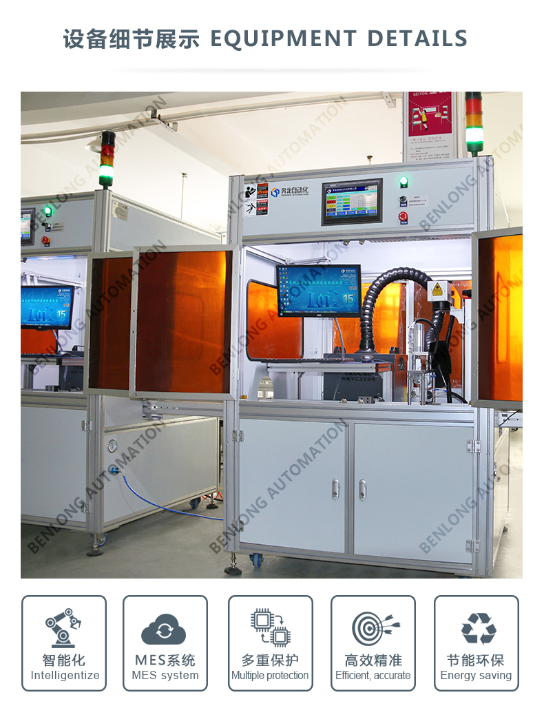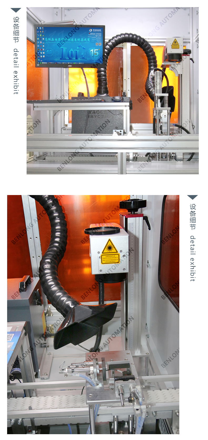 具有自动激光打标二维码或产品ID码、CCD检测、不良品区分、缺料报警、竖立翻转水平、水平翻转竖立等工序的在线监测、