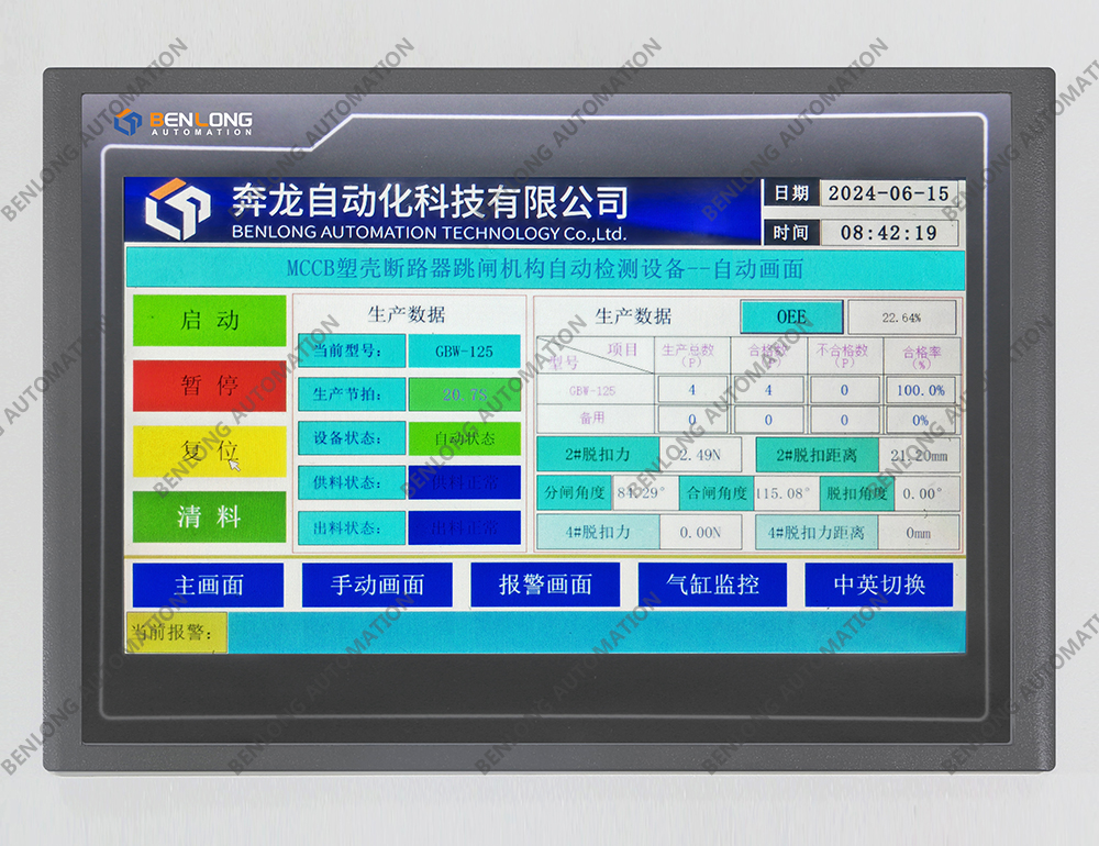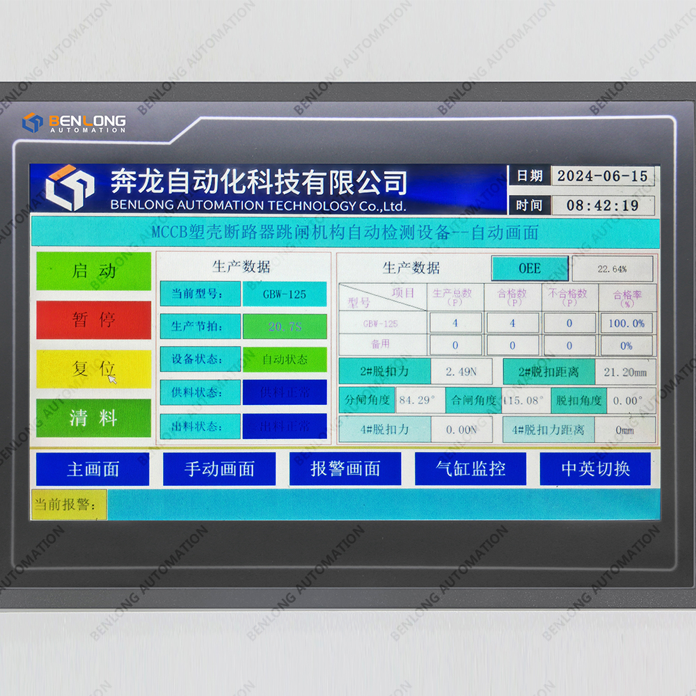 具有自动检测脱扣力、分闸角度、脱扣距离、合闸角度、脱扣角度、视觉系统、脱扣力距离、激光打标二维码、自动读码、