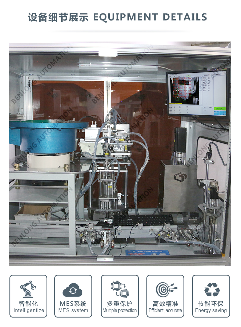 具有自动穿铆钉、CCD检测、不良品区分、缺料报警、翻转竖立等工序的在线监测、实时监控、质量溯源、条码识别、