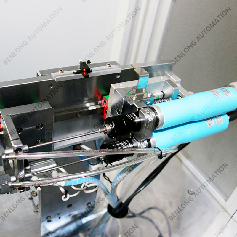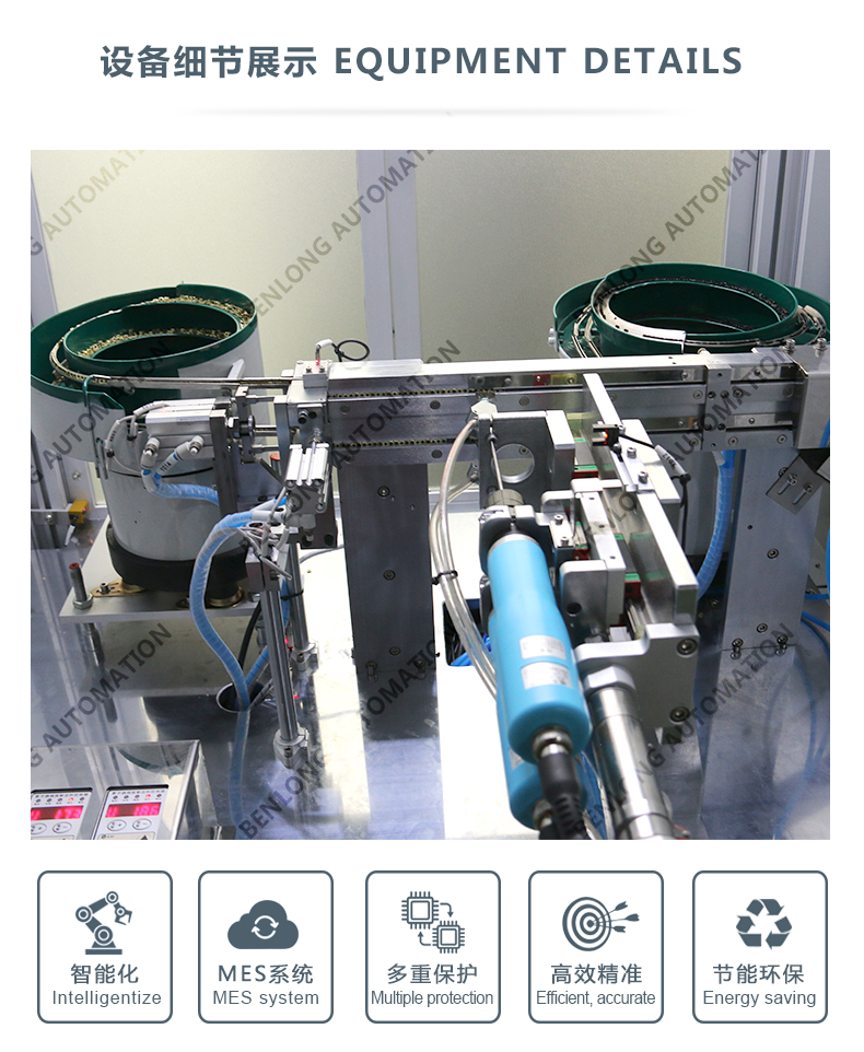 具有自动螺母、螺丝上料组装、扭矩识别、合格不合格区分、下料、包装工序的装配、在线检测、实时监控、