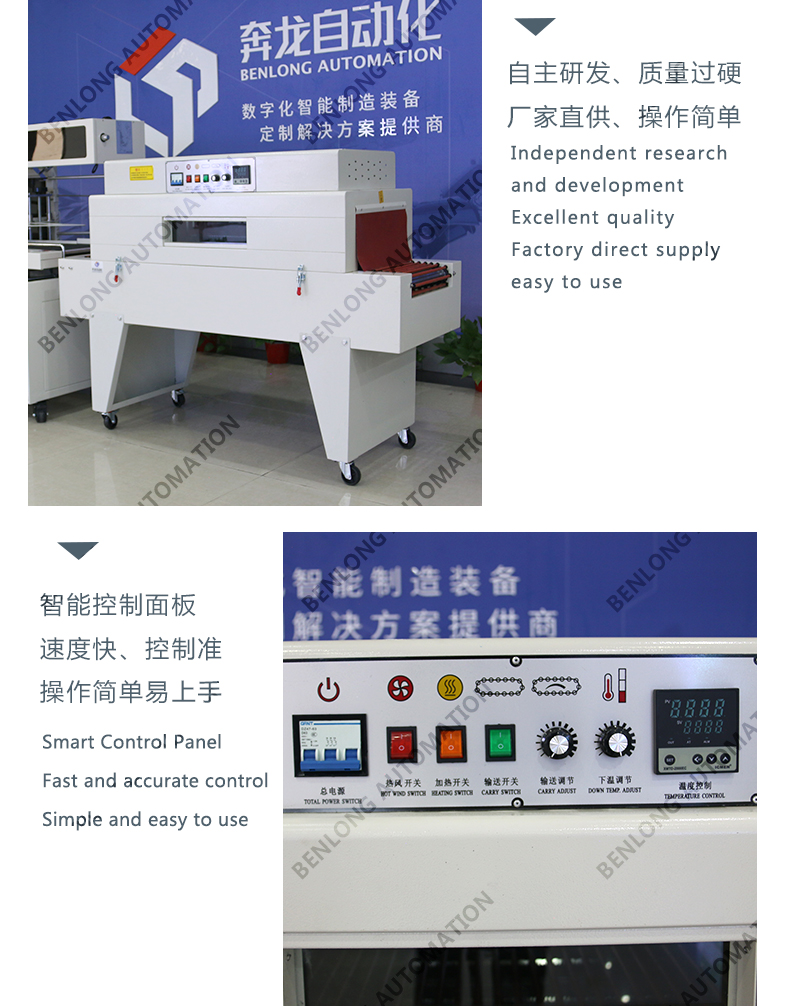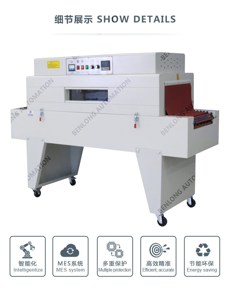 作业方式:人工放料或封切机自动放料,自动热收缩。