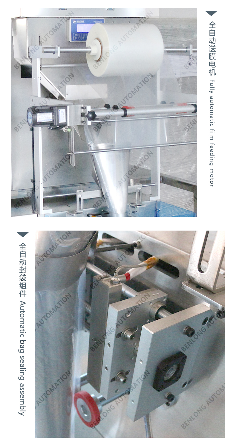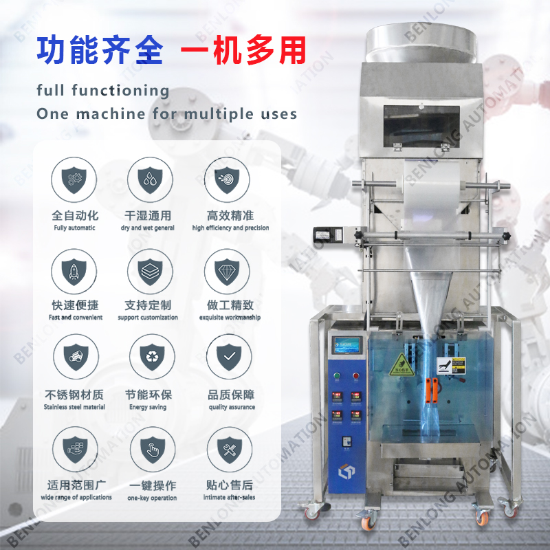 分装机自动称重,自动投料,自动感应落料,自动封切,自动出包;可单品或者多品种混合称重投料包装。