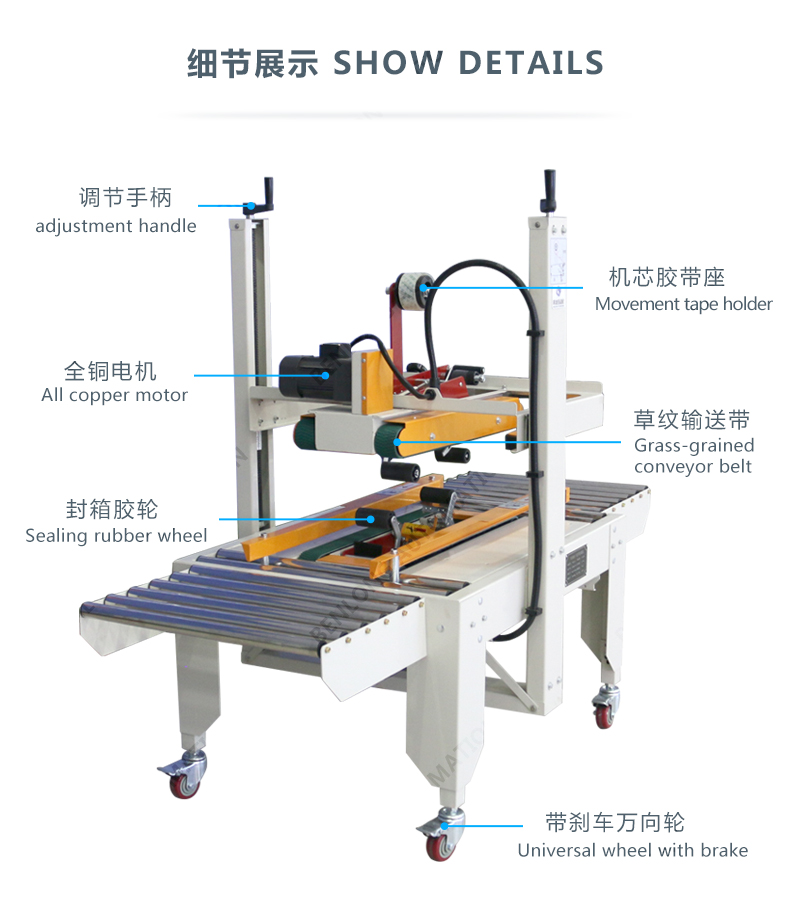 • 漏电断路器上下驱动胶带封箱机