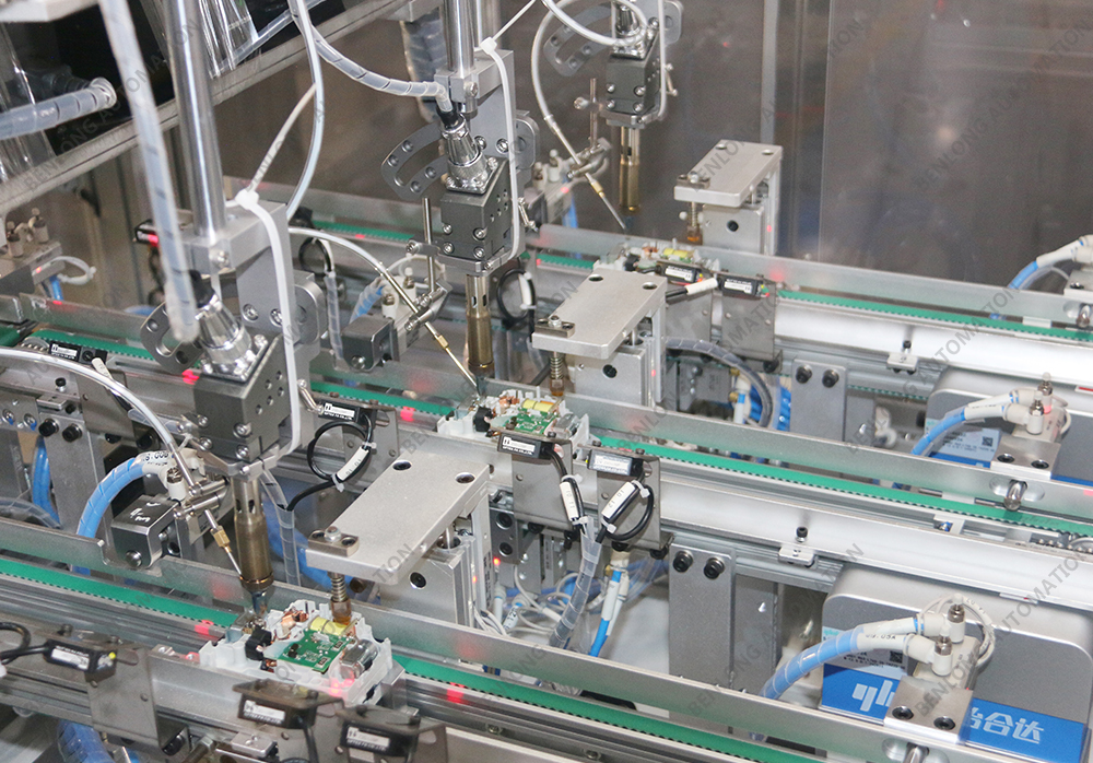 具有自动装配、加注焊接辅助材料、检测、焊接、锡焊、不良品区分、包装、码垛、AGV物流、缺料报警等工序的装配、
