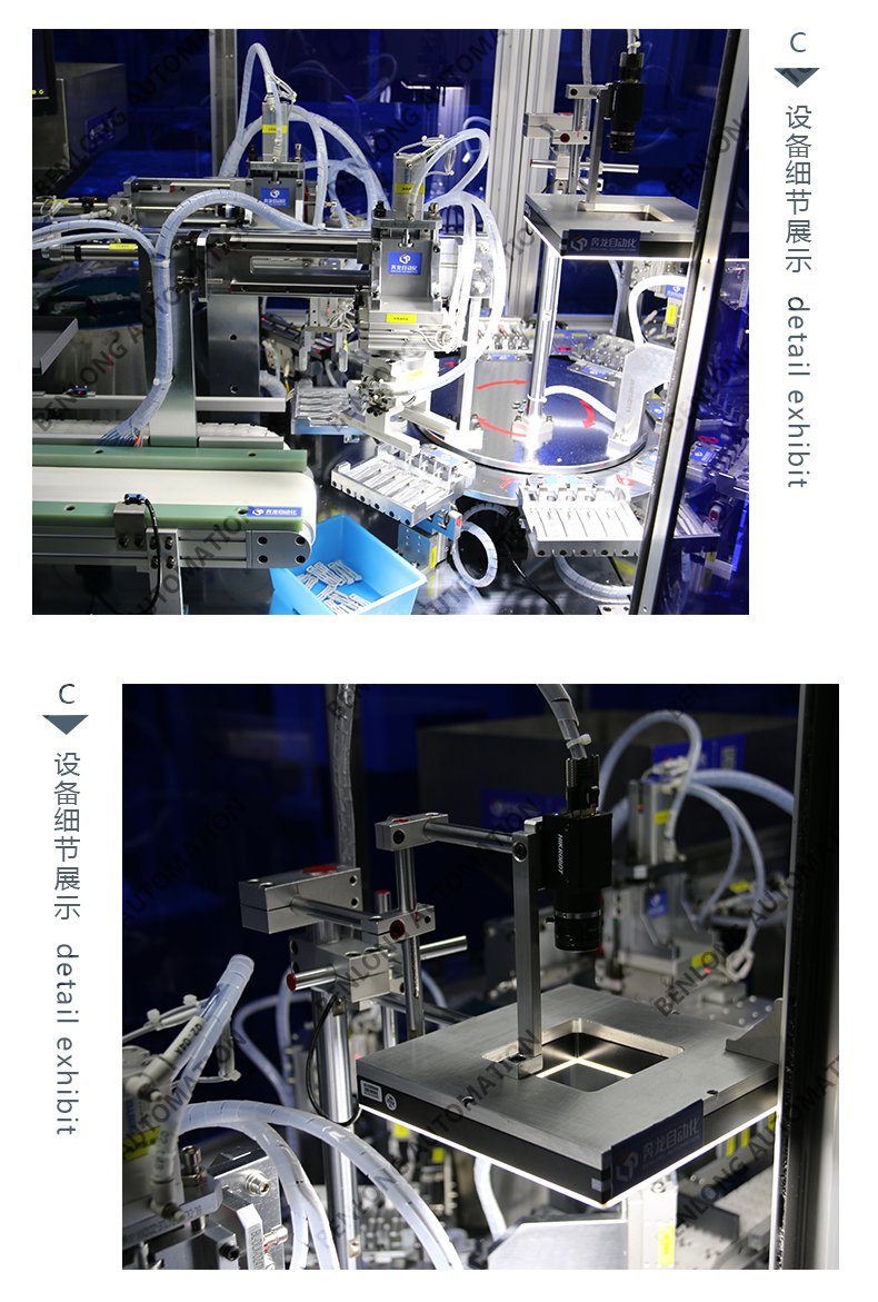 具有自动装配止动件、CCD视觉检测、不良品区分、缺料报警、不良品回流返工等工序的在线监测、实时监控、质量溯源、条码识别、