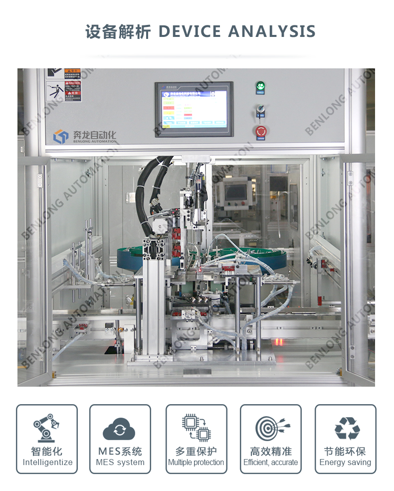 具有自动装配接线柱螺丝、自动检测扭矩、不良品区分、下料、缺料/满料报警等工序的在线监测、实时监控、质量溯源、条码识别、