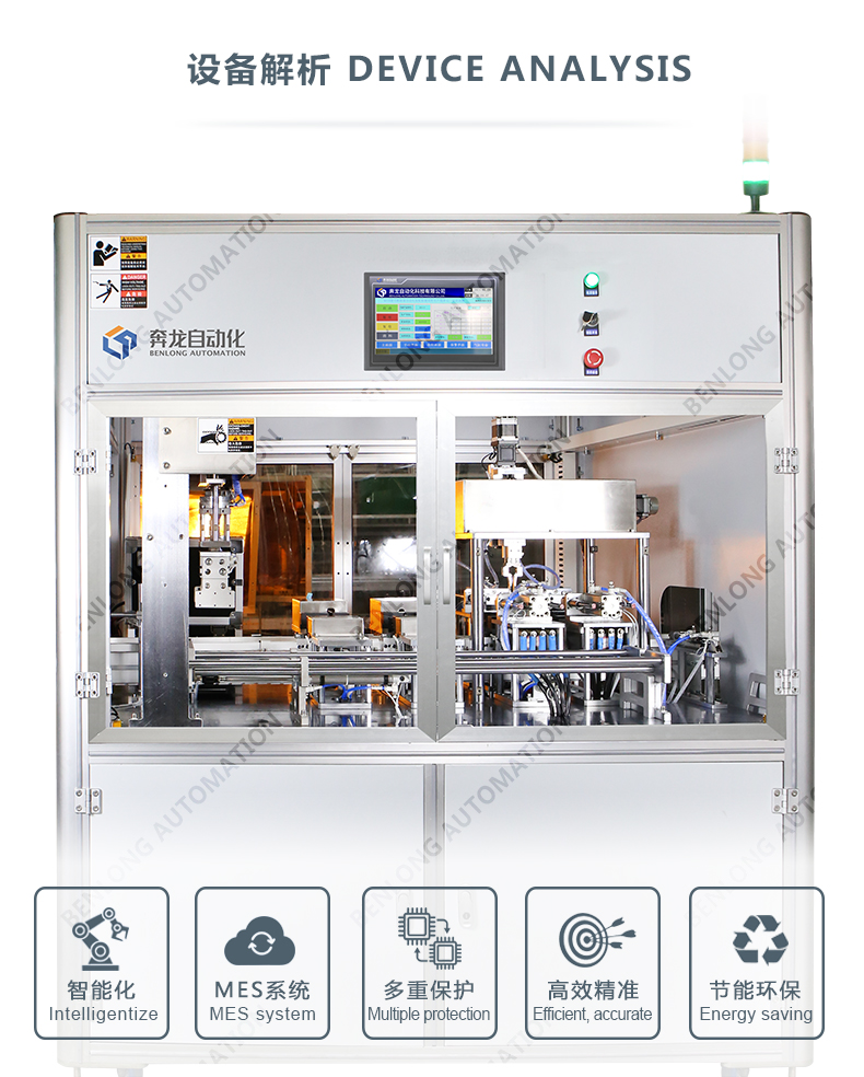具有自动脱扣力、脱扣行程检测、不良品区分、下料、缺料/满料报警等工序的在线监测、实时监控、质量溯源、条码识别、关键元器件寿命监测、