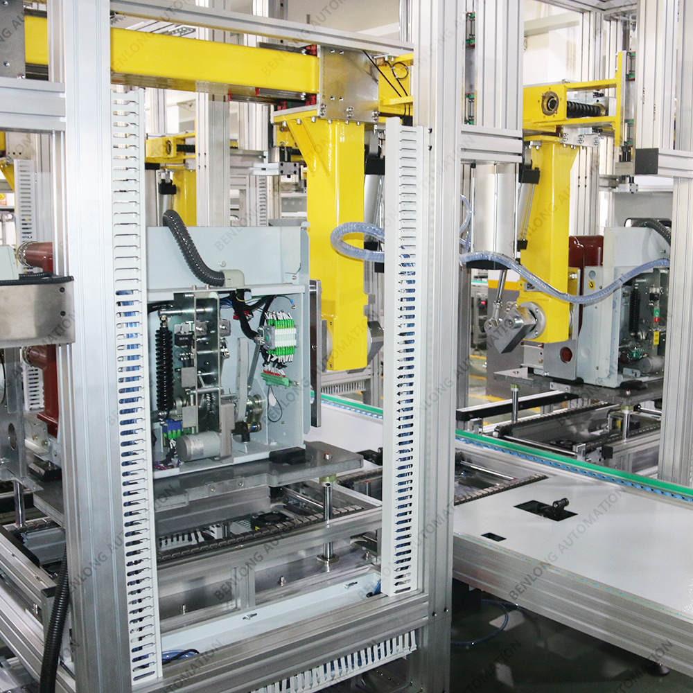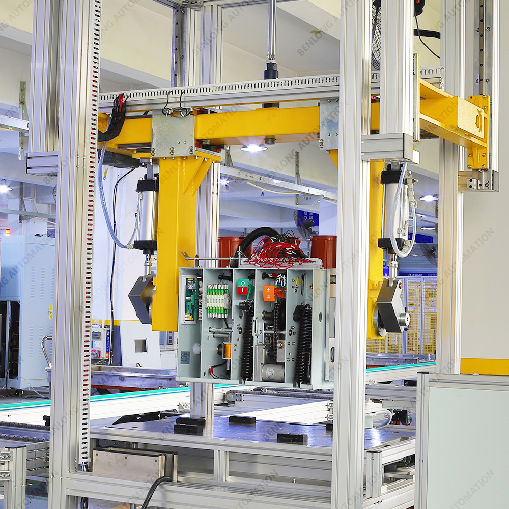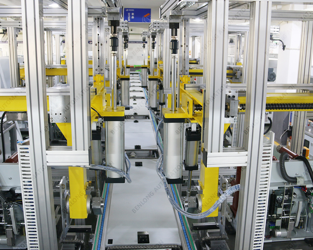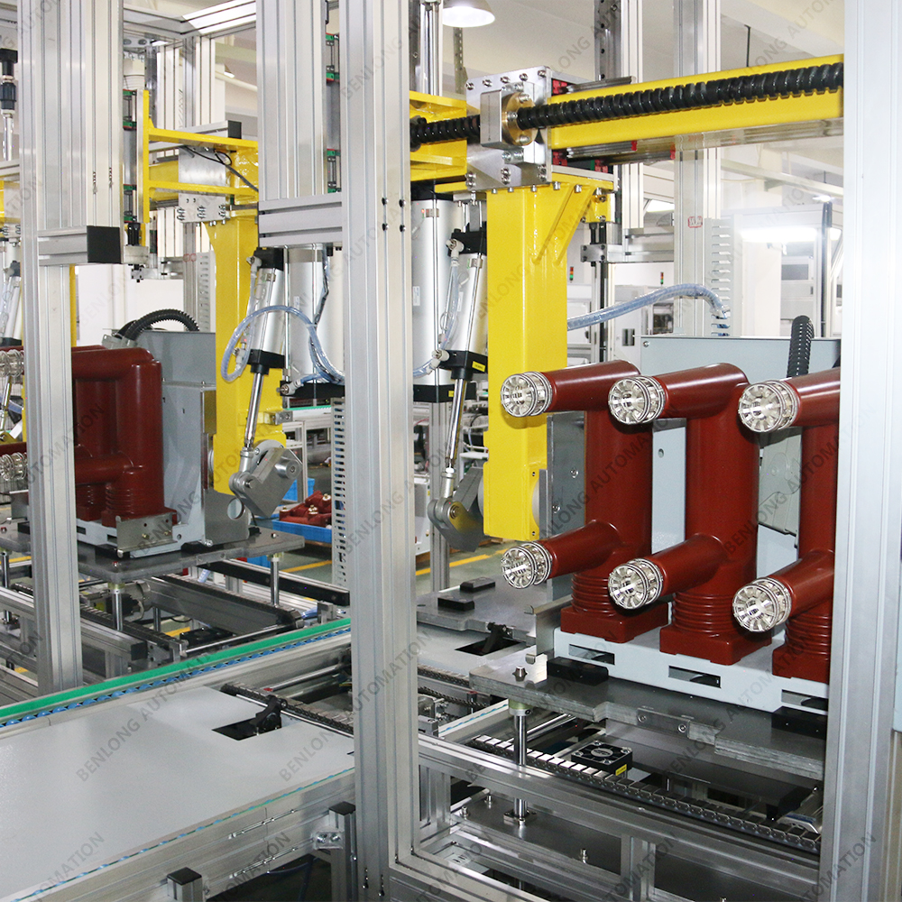 具有自动AGV物流输送、龙门架自动上料、倍速链物流、绝缘筒装配、灭弧室装配、初调装配、初调翻转、