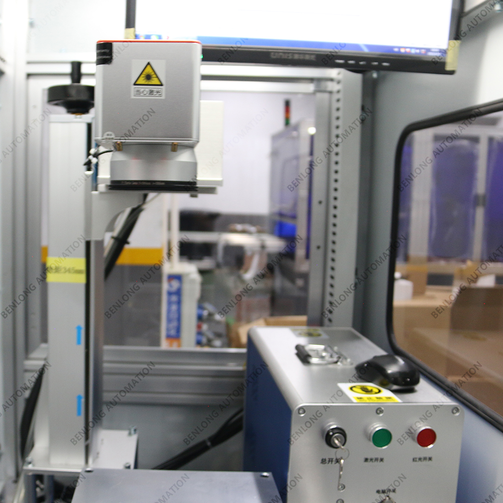 具有自动上料、自动激光打标、自动读码检测、自动下料、缺料报警、90°旋转等工序的在线监测、实时监控、质量溯源、条码识别、关键元器件寿命监测、数据存储、MES系统与ERP系统联网,